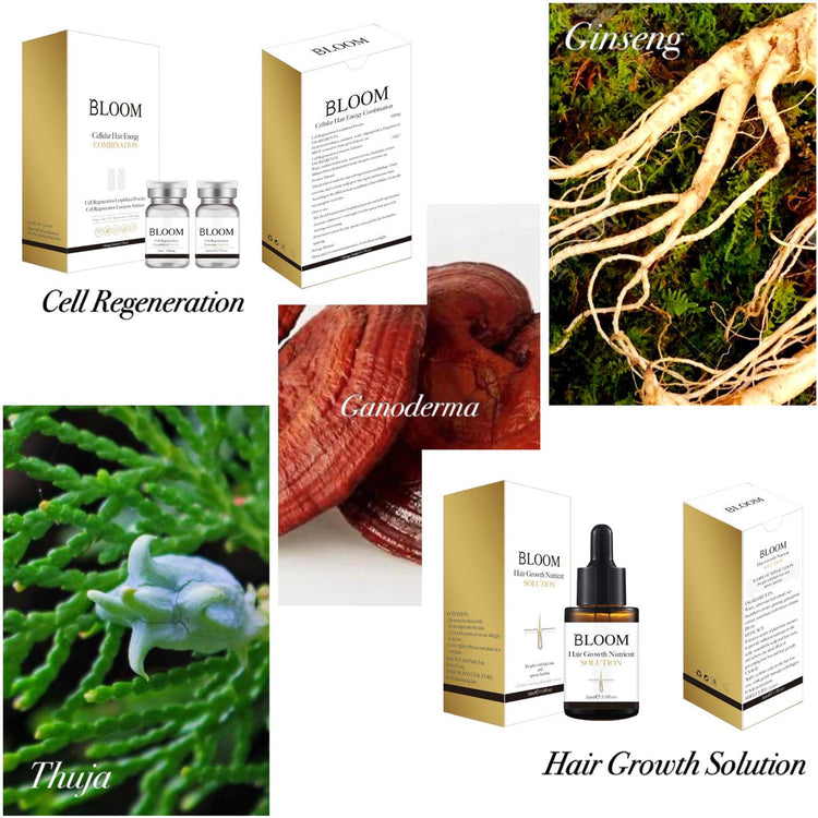 From our very own all natural Bloom Hair Growth Solution for daily at home use and after care use